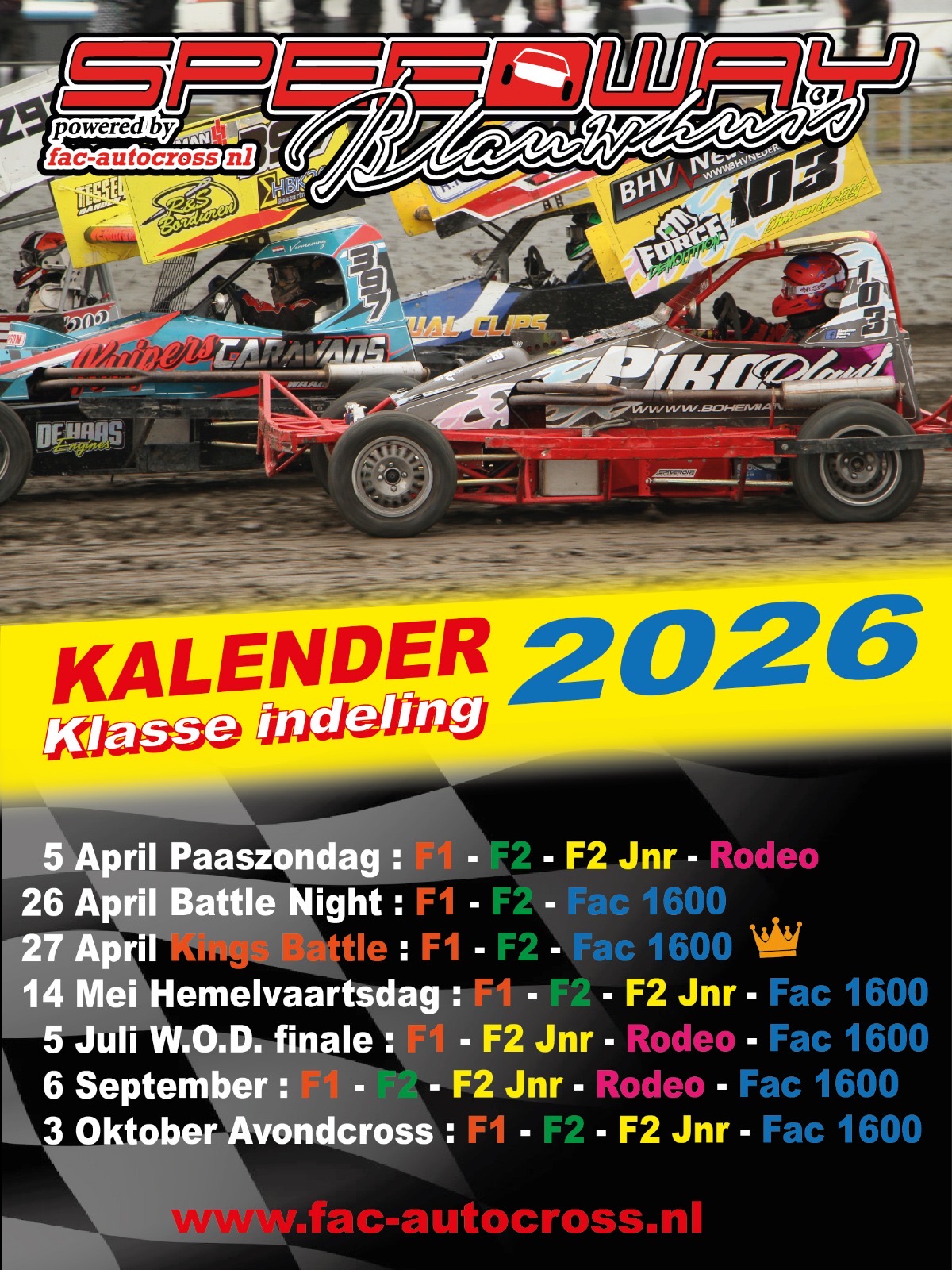 De FAC presenteert de klasse indeling van het seizoen 2026. Voor de racefans en coureurs hebben wij de volgende klassenindeling gemaakt. Met het opstellen van de indeling is er zorgvuldig gekeken of alles binnen de mogelijkheden past van het dagprogramma. In dit seizoen nodigen wij de volgende klassen van harte uit op ons circuit. Ben jij erbij?