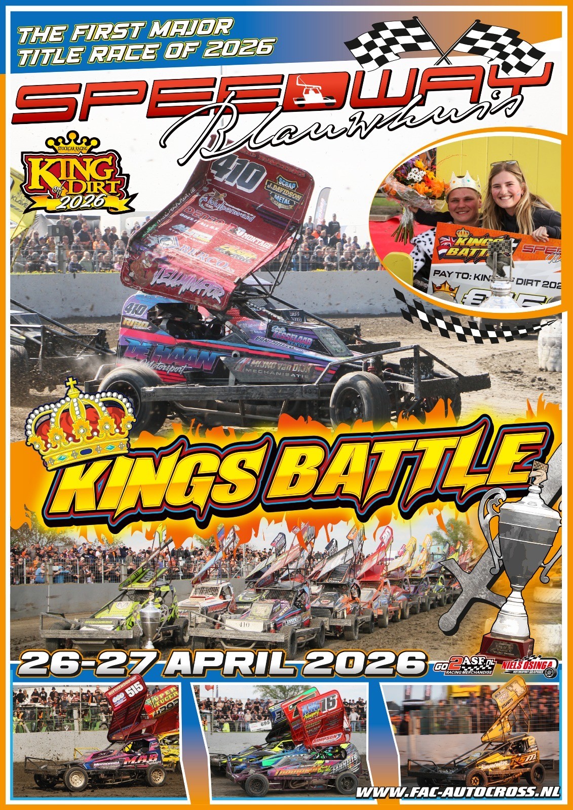 Het is weer tijd voor de KingsBattle. Op zondag 26 april barst het Internationale autosportevement weer los op ons circuit. Het deelnemersveld is dit jaar breder en sterk dan ooit. Aan de start staan: Stockcar F1, Stockcar F2 & FAC1600.